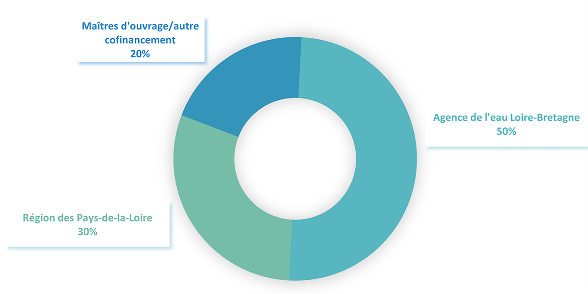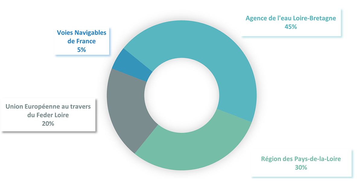 Les engagements financiers des deux contrats correspondent à : Programme de rééquilibrage 0 millions d'€ Animation et la communication 0 € Restauration et la préservation des annexes fluviales 0 millions d'€ Évaluation et le suivis 0 millions d'€ Coût total : 0 millions € Selon les actions, les cofinancements peuvent varier. Financement du programme de rééquilibrage du lit mineur Financement des projets de restauration d’annexes fluviales Les financeurs engagés auprès des maîtres d'ouvrage