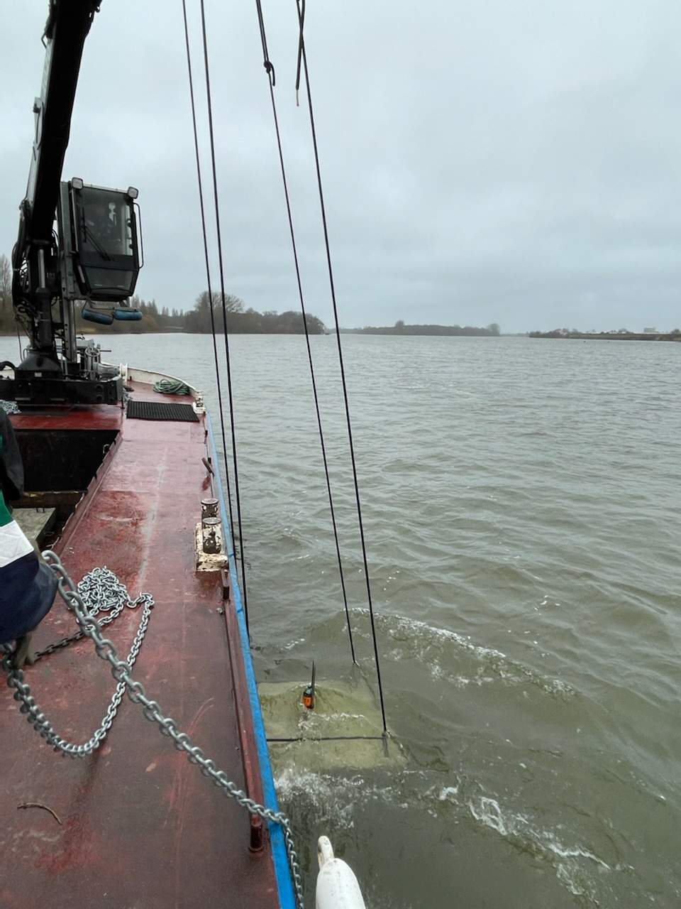 Pas moins de 20 hydrophones vont être replacés dans le font du lit et fixés à l’aide de corps-morts d’une tonne pour chaque équipement. Pour cette installation et les différentes manipulations nécessaires à la collecte des données, l’équipe de Voies Navigables de France se mobilise à nouveau cette année.